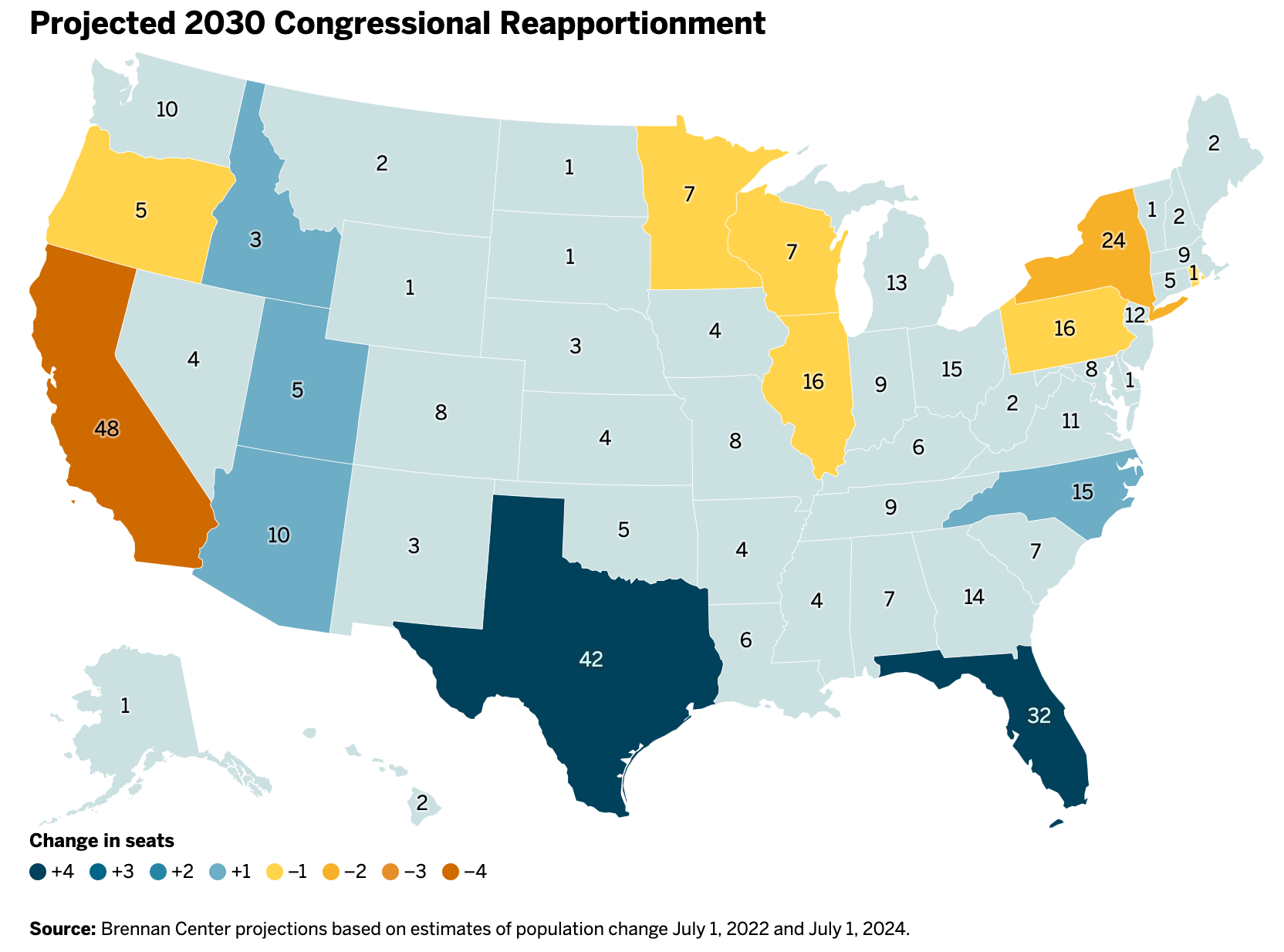 Trump’s crackdown on immigration and our regional refusal to build housing are combining to make the 2030 census critical in the national balance of power. Withinternational migration falling and domestic migration away from high-cost cities rising, we may be in serous trouble. Current projections show places like Massachusetts, New York, and California losing congressional seats, while states like Texas, Florida, and Utah all gain. That kind of realignment could alter the balance of power in Washington for a decade or more.